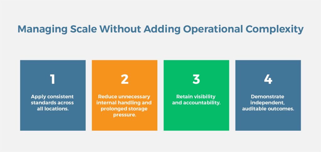 As electronic devices move beyond the holding period, the governance challenge becomes ensuring that physical handling, system records, and final outcomes remain aligned. Where systems and downstream processes are joined up, evidencing what happened to individual items becomes significantly easier.