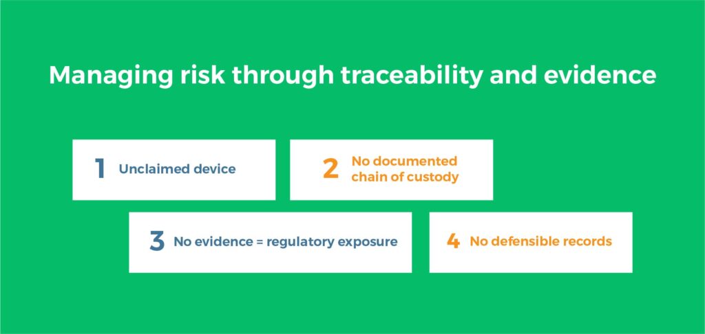 In practice, locked devices often remain in storage for extended periods, creating uncertainty around ownership, status and disposal. Without a structured process, organisations can struggle to demonstrate what happened to those devices, when decisions were made, and how risk was managed.